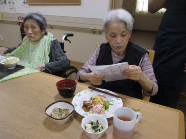 メニューを読み上げている途中から、待ちきれず召し上がるご入居者様もみられましたよ。