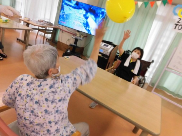 今回は至ってシンプル。「1分間ご利用者様とスタッフでバレーを続けてその数を競う」という内容となっております。