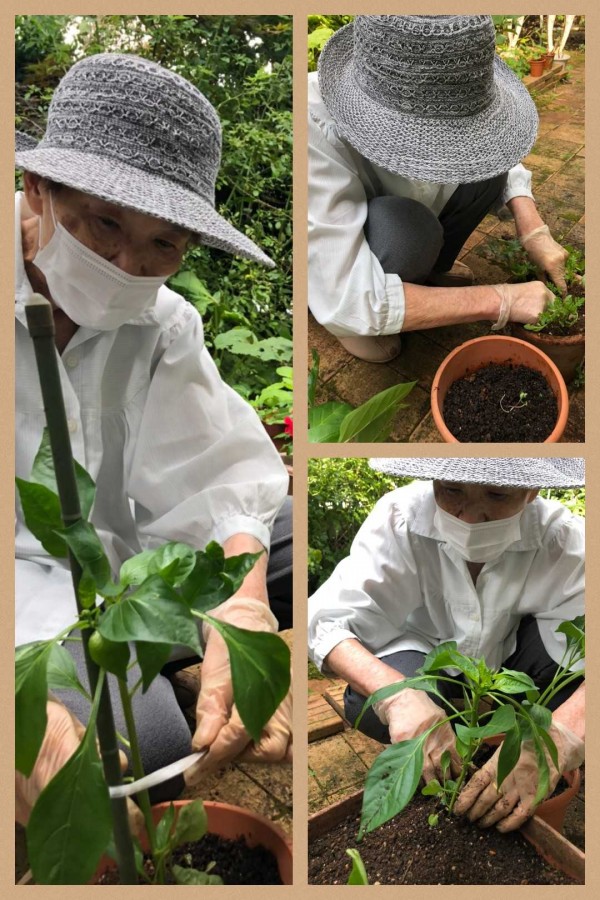 ご自宅で種から育てたピーマンの苗をお持ちくださいました。