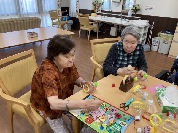 作業内容ですがペットボトルを加工し提灯を作っています。