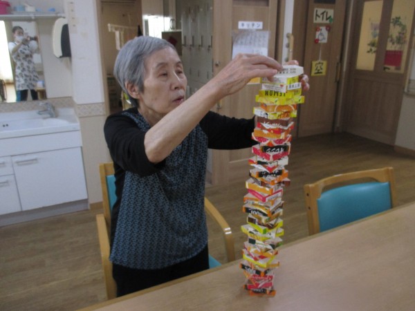 皆様上手に高く積み上げ、頭と同じ位の高さになりました。