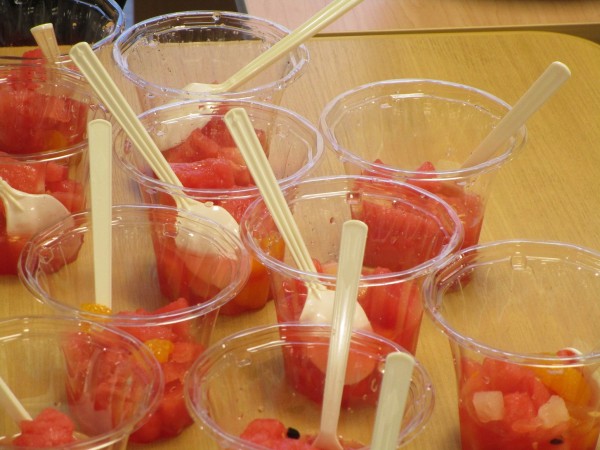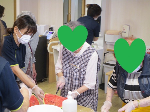 納涼祭で行った「すいか割」割った西瓜でみなさんでフルーツポンチを作り食べました!!