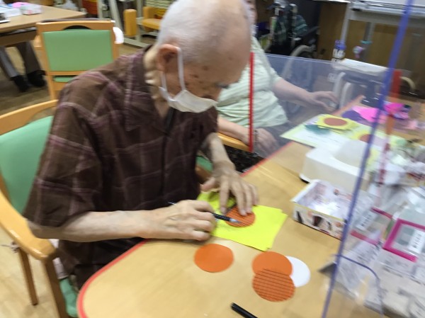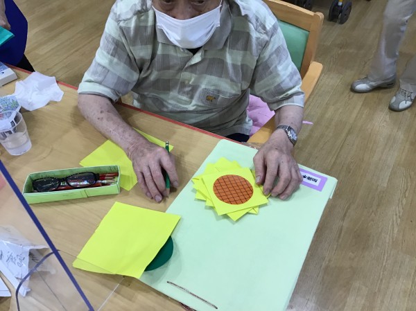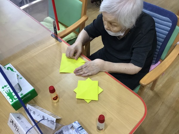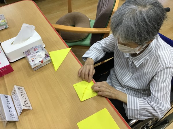 色付き画用紙を綺麗に折っていきます。