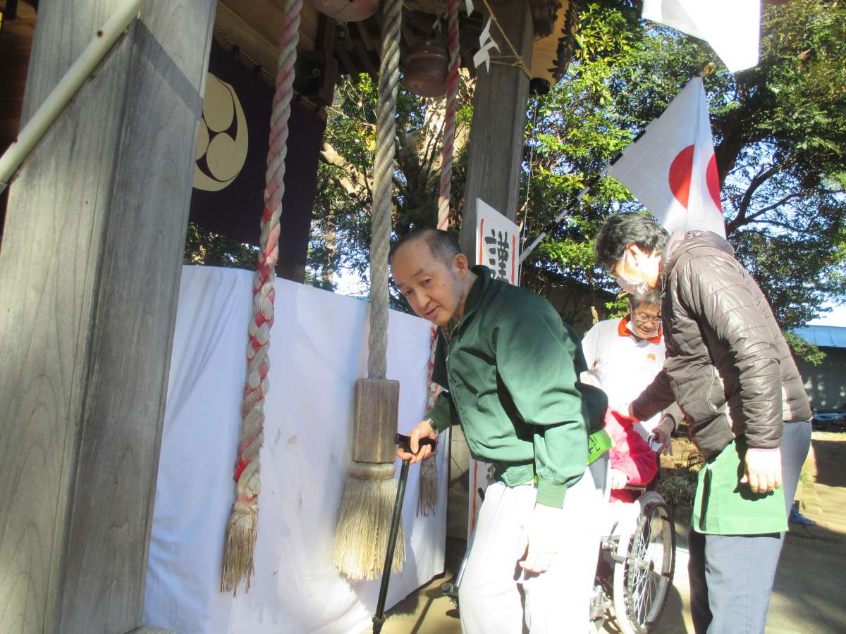 お正月はみんなで初詣に行き、神社で甘酒をいただきました。みなさん大喜びです。