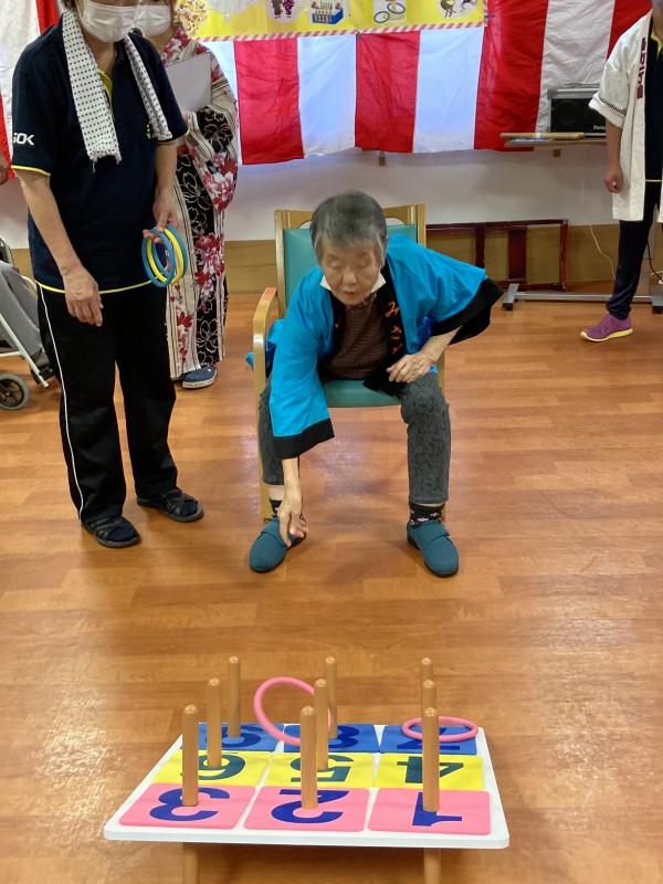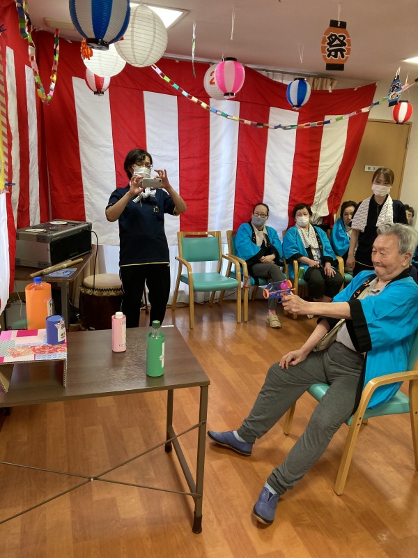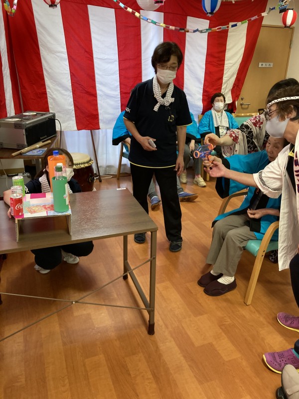 今年の納涼祭の縁日では、輪投げと射的ゲームを行いました( *´艸`)