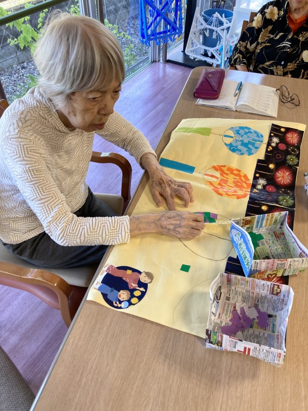 今回は季節を意識して皆さんに風鈴の貼り絵をして頂きました。