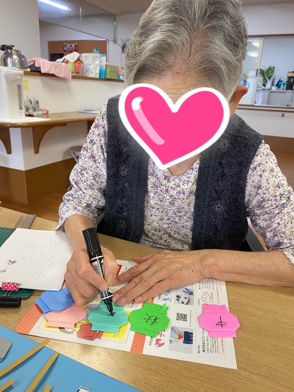 かなりの手指のリハピリになりましたね。また季節を感じる事で『生活意欲の向上』を図ることも目的としています。