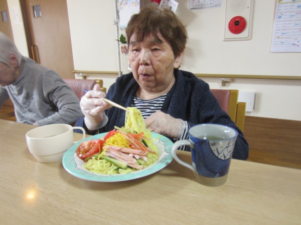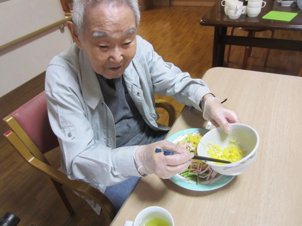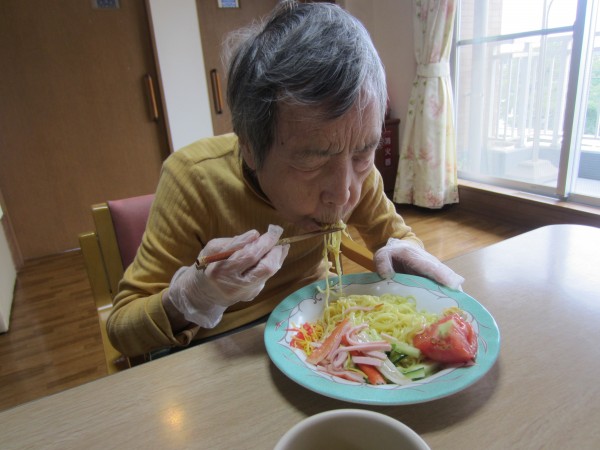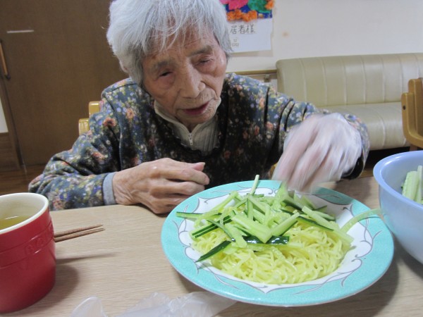 8月16日 3階では昼食に「冷やし中華」をみんなで作って食べました。