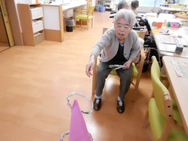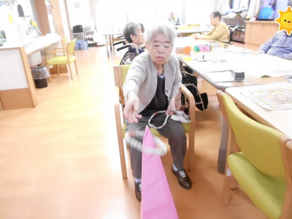 1階T様N様はスタッフが作った輪投げで遊んでいました(*^^*)