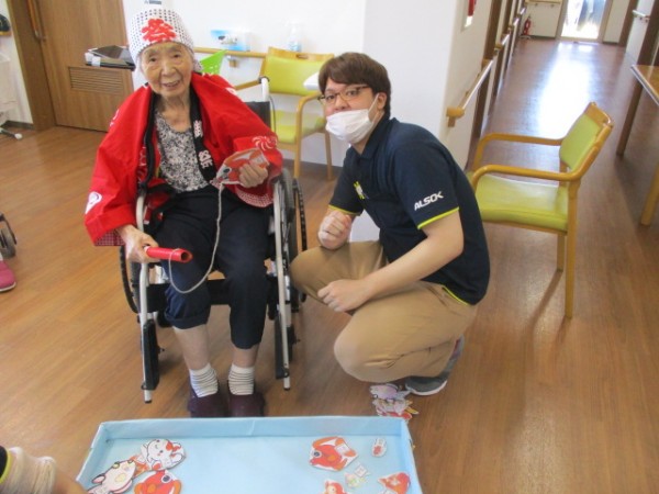 金魚すくいと射的のゲームに挑戦している様子です。必死になられて何度も行っていました。