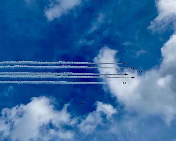 グループホームみんなの家・墨田では、小スペースの屋上にてパラリンピック前の予行演習の「ブルーインパルス」を見学しました。