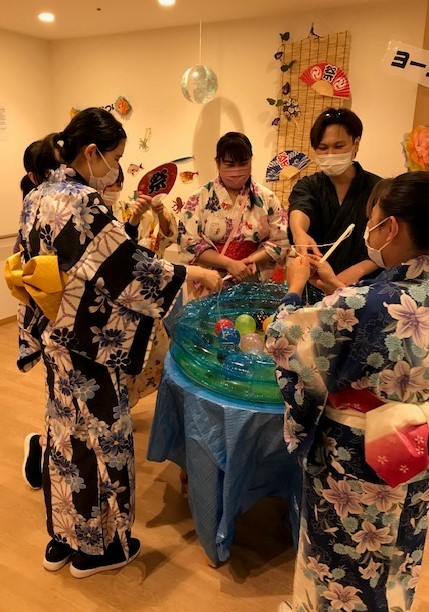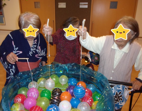ヨーヨー釣りは祭りの定番ということでゲームの中でも一番盛り上がっていましたよ(≧▽≦)