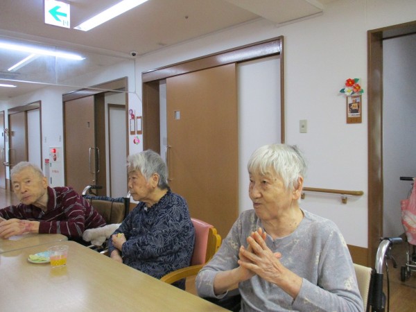 入居者様は、ホールに流れる演歌を口ずさんだり、談笑したり、楽しい時間を過ごされたようです。