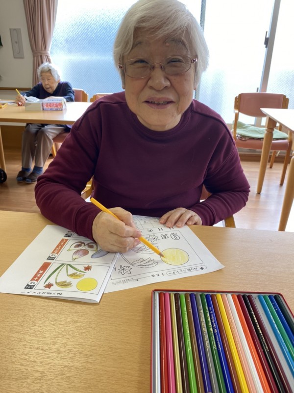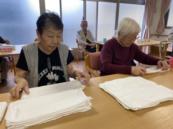 おしぼりを作ってくださる方、季節の塗り絵に取り組まれる方、漢字パズルに集中される方など☆本日も活気溢れる二階フロアのご様子でした(๑˃̵ᴗ˂̵)