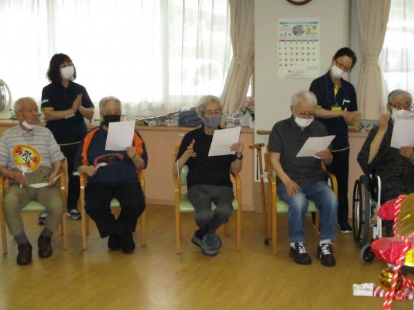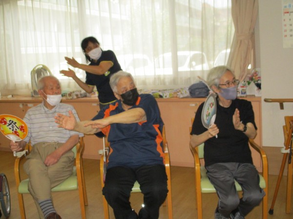 賑やかに楽しみながら体を動かしました。最後に『大東京音頭』を歌い、皆さん笑顔いっぱいで楽しまれていました。