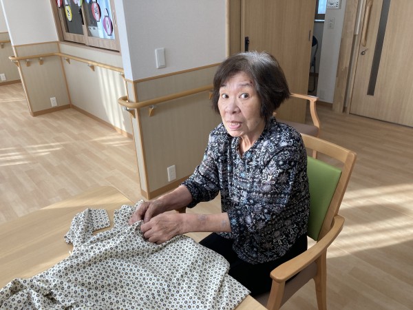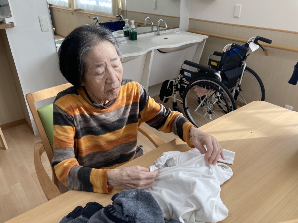 洗濯物をたたむのを手伝って下さっています。