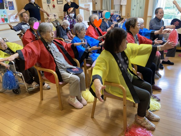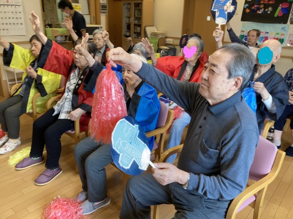 法被を着たり、うちわやポンポンを持ったりと準備万端です♪