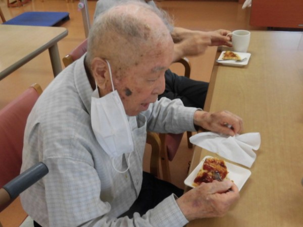 ヨーヨーすくいの後は、これはまたお祭りには欠かせない屋台風味のおやつの時間です。手作りでのお好み焼き風を皆様と一緒に召し上がりました♪お疲れ様です!(^^)!