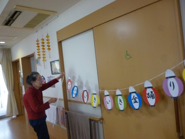 グループホームみんなの家・横浜飯田北Ⅱでは8/25日に開始されるリモート盆踊りの飾りつけの準備に大忙し!