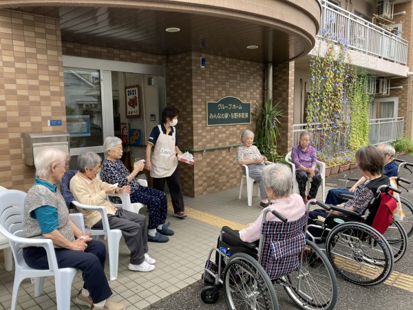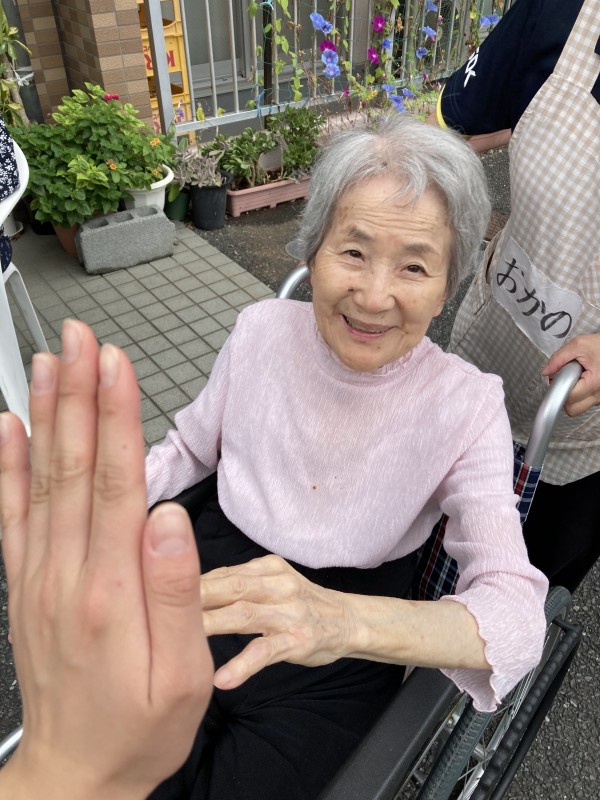 コロナウイルスの影響でなかなか外出出来ないので、気分転換に皆さんで外気浴を行いました(^^♪