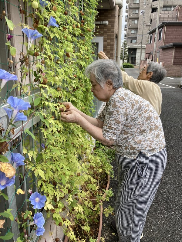 ふうせんかずらの種を皆さんでとったり、合唱されたり、朝顔をみて楽しまれたりとそれぞれ楽しんで頂けたご様子でした。