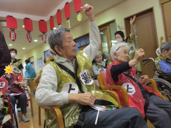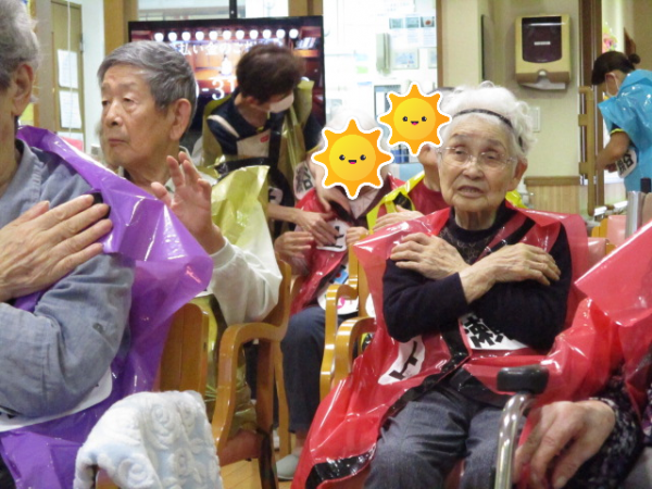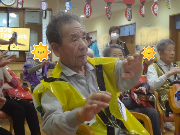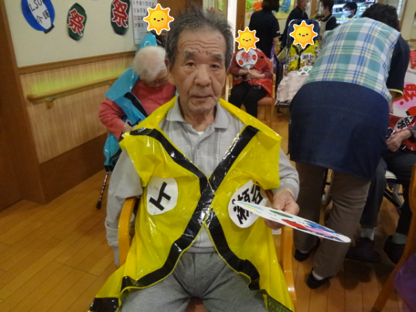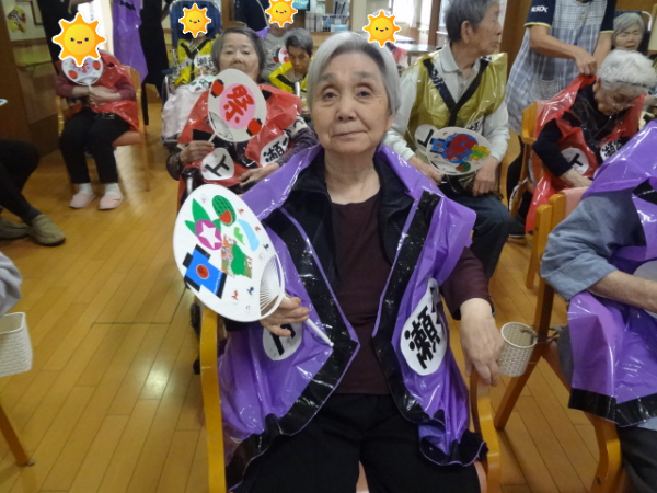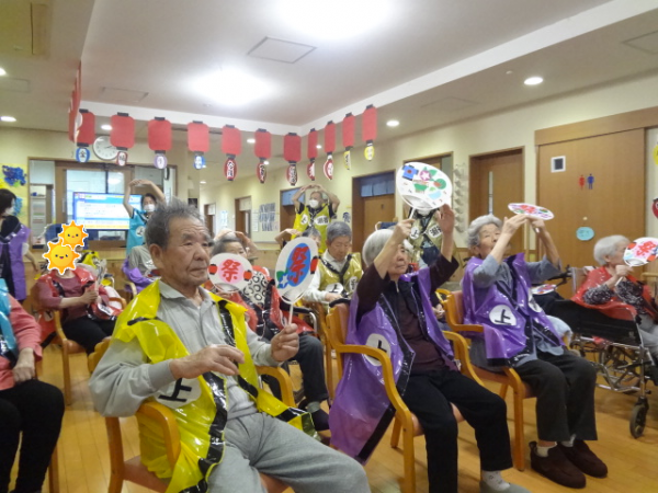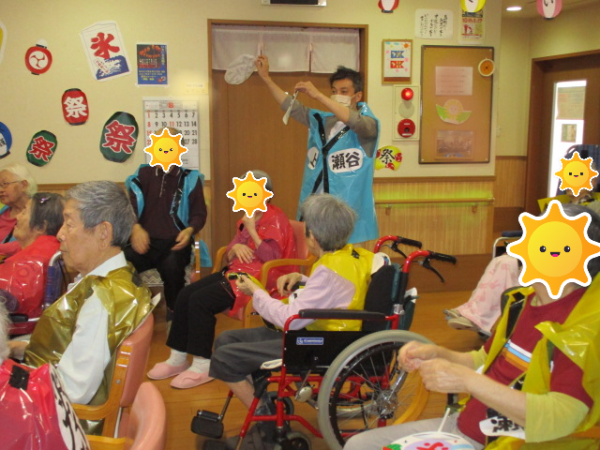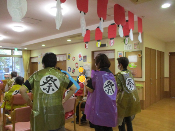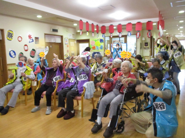スタッフ・ご利用者様全員で着用(#^.^#)盆踊りって感じですね\(-o-)/
