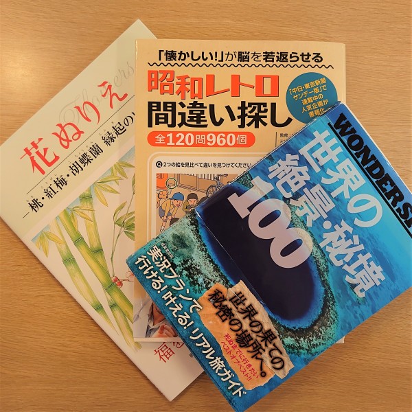 脳トレの本、皆様の脳の運動に使用しています。