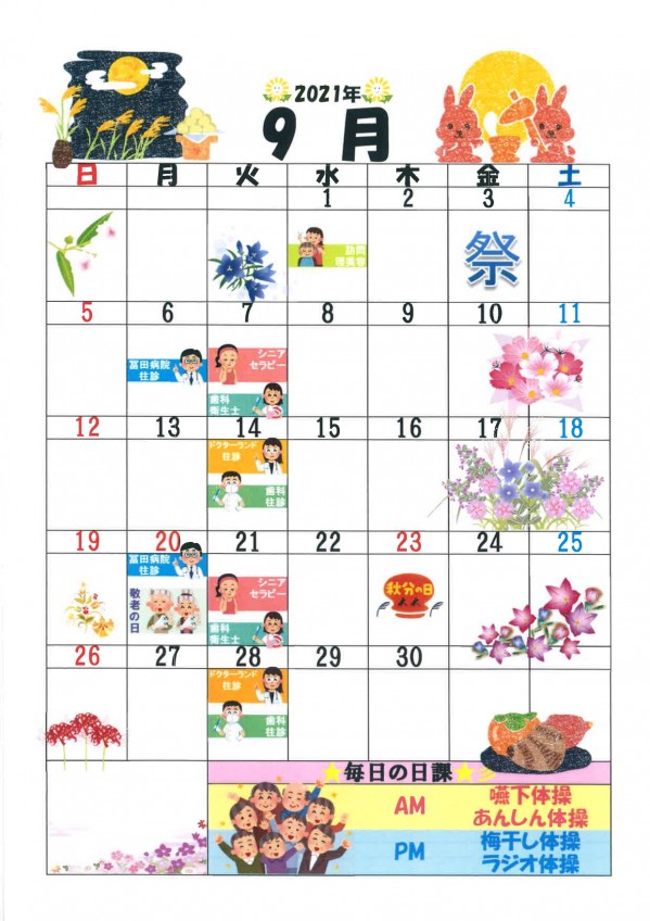 介護付有料老人ホームみんなの家・南中野★9月カレンダーと9月のお話し☆彡