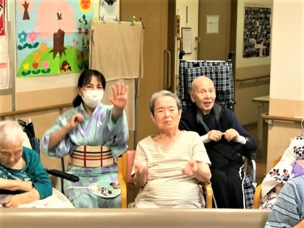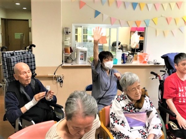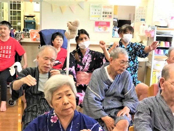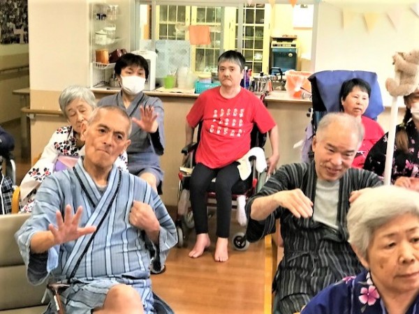 ご紹介が遅れてしまいましたが、先月25日に行いました全事業所参加『リモートいきいき盆踊り』にみんなの家・横浜三保2も参加しました!