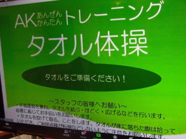 今回はタオル体操となりました。以前にもご紹介したこちらの体操、身体の隅々を本当に動かすのでとてもいい運動になりました!