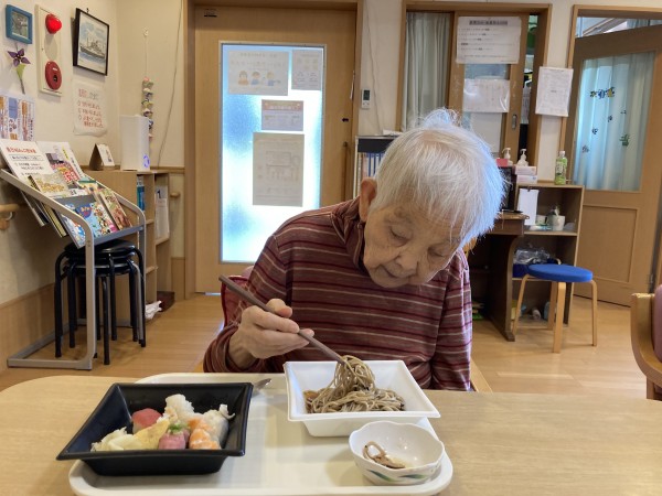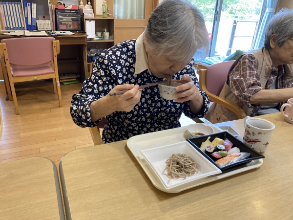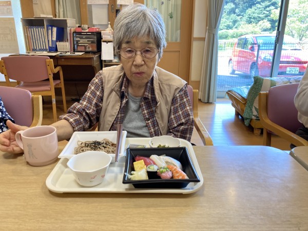 今日は出前のお寿司とお蕎麦のセットを準備しました!
