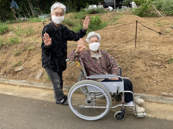 先週、雨の合間にお散歩チャンスがやってきましたので、また降り出すのを心配しつつ大急ぎで二組のご利用者様をお散歩にお誘いしました。まずは殿方1名様。この方は外を歩くのが大好きで、歩きたい歩きたいと日々仰っていたのでいの一番にお連れしました。