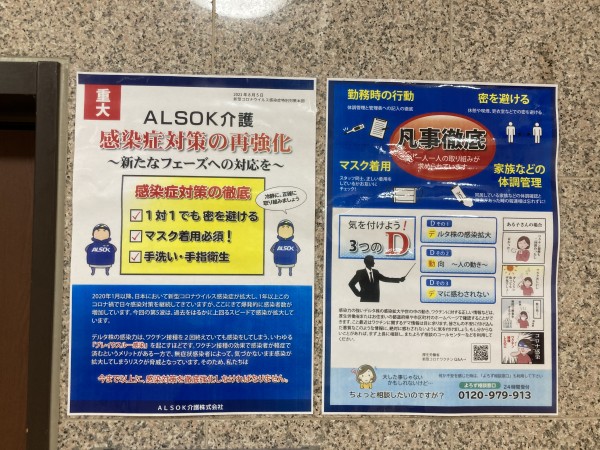 当施設では、8月14日にご利用者様、施設職員全員のワクチン2回接種が完了しております。安心材料のひとつとはなりますが、今後も徹底した対策を行い、感染を防いでいきたいと考えております。