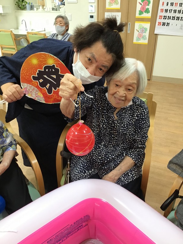 盆踊りがリモートで開かれたので、盆踊りにちなんで、ヨーヨー釣りをやりました。