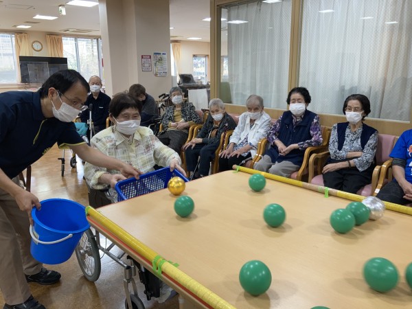 おたからキャッチゲームは上から転がって来るボールを、籠でキャッチするゲームです!