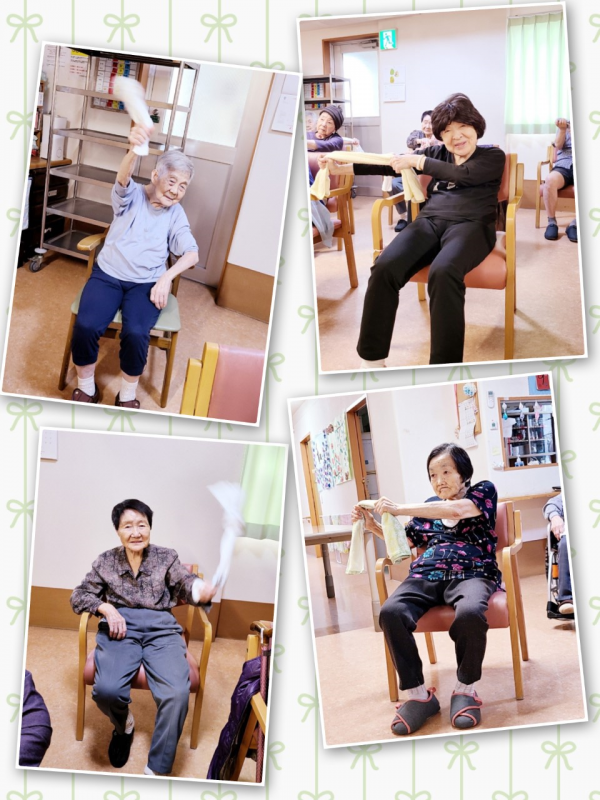 N様は笑顔で楽しそうに参加されていて、職員が褒めると「うれしいわ」と喜んでいました♪