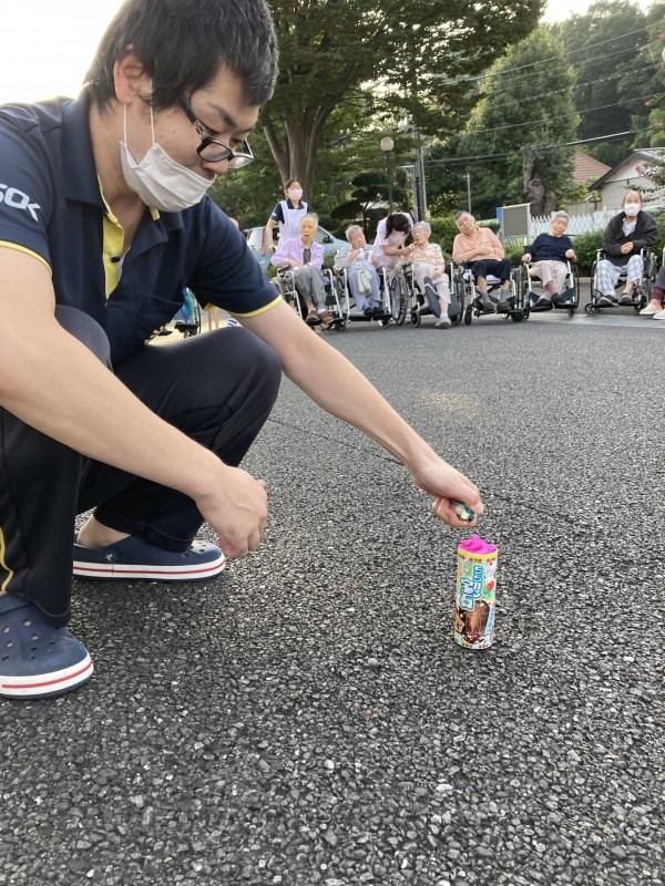 納涼祭もとい夏祭りのプログラムでは最後に花火が組まれていました。