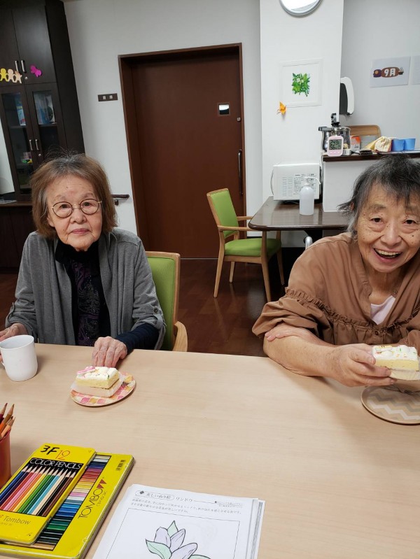 いつも三階は笑顔とおしゃべりが耐えません。ほとんどのみなさんが日中は食堂に集まり、ぬりえをしたり、