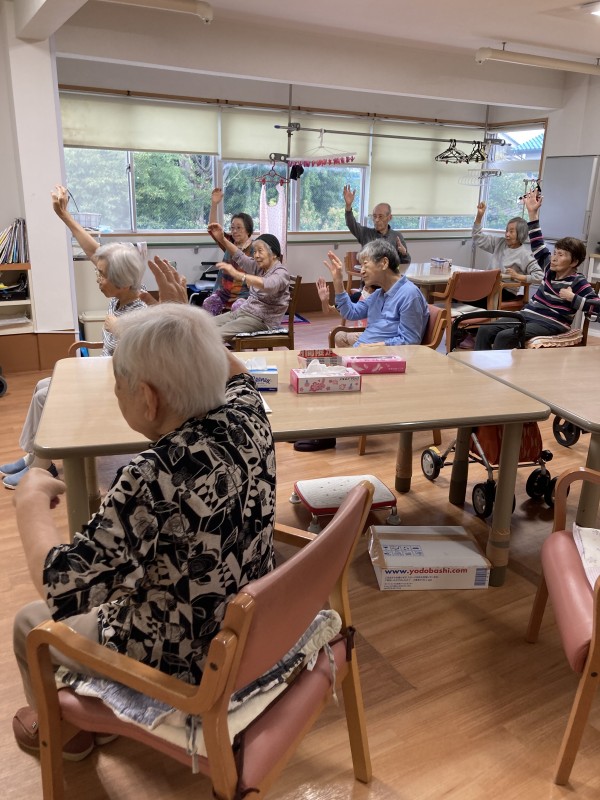 9月2回目のリモート運動教室は「いきいきリズム体操」でした。往診等の都合で今回は2階のご利用者様のみが参加して下さいました。