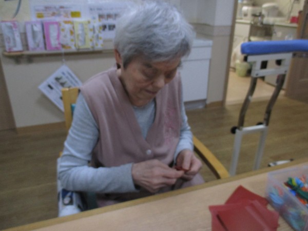 鶴の折り紙が上手なご入居者様にはたくさん作っていただき、秋の景色に利用しようと作成中です。