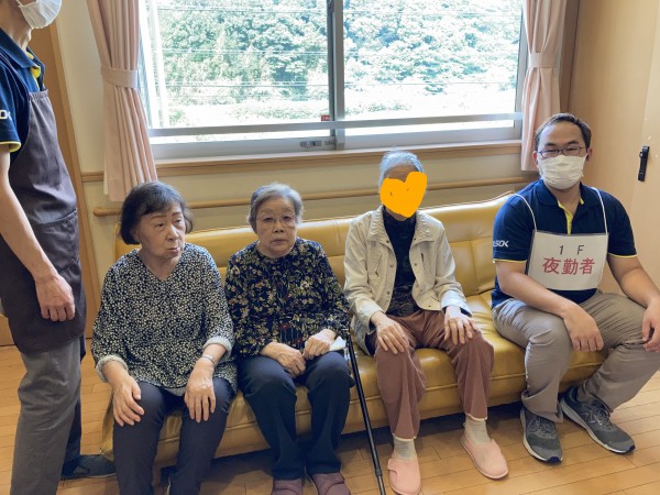 夜勤者が火災を発見し、皆様を外に誘導し避難しました。