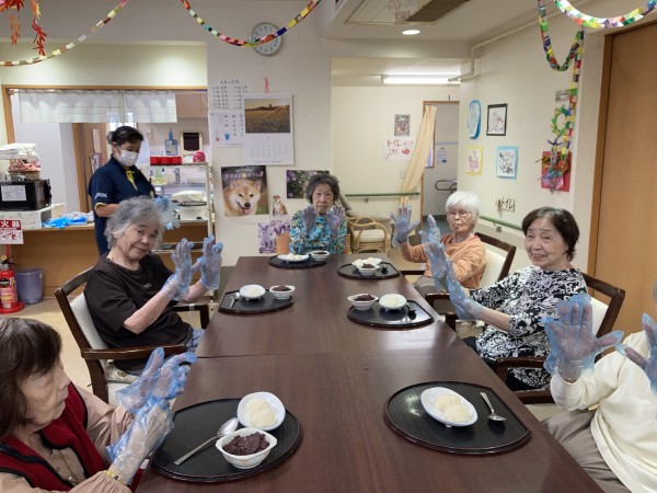 本日のブログは、二階の敬老会「おはぎ作り」をご紹介いたします。