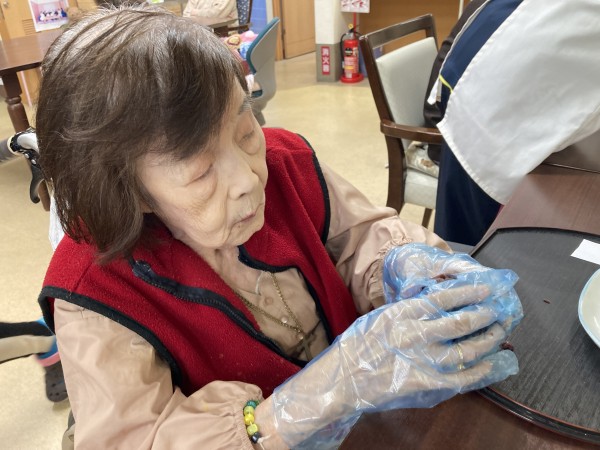 そして入居者様も、おはぎを作るための準備を!(写真↓)