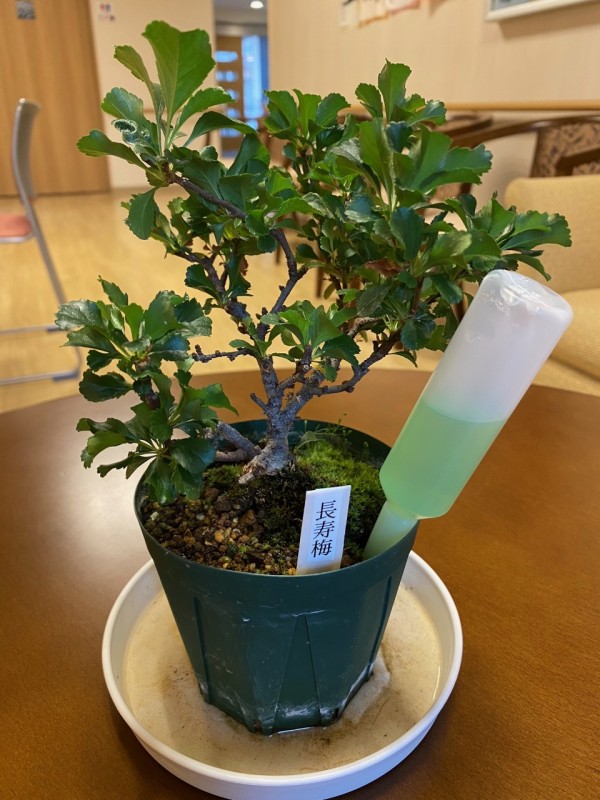 上の写真は3月から育てている「長寿梅」です