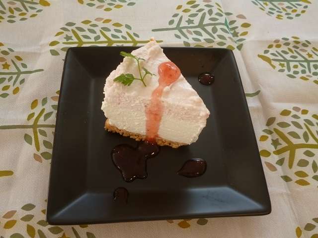 今日のケーキは「ヨーグルトムースケーキ」 ♡♡ スタッフの腕前も上がりました ↑
