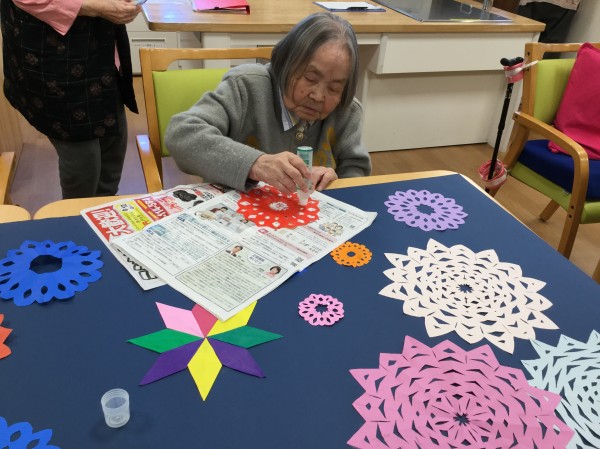 スタッフと利用者様の愛の共同作業(半ば強制的)である壁飾り。
