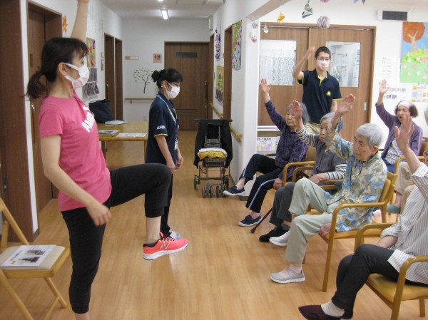 リモートでの体操が続いていましたが、今回は先生がホームに来て下さり、一緒に体を動かしました☆