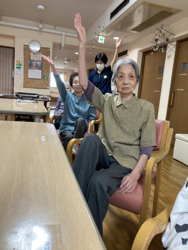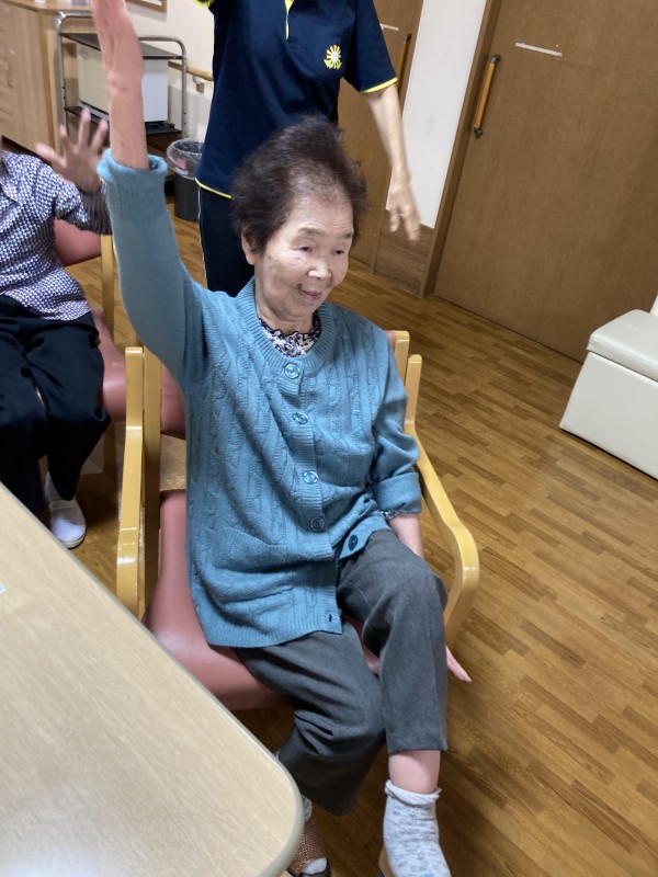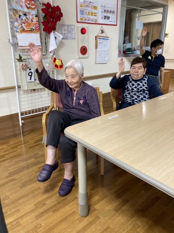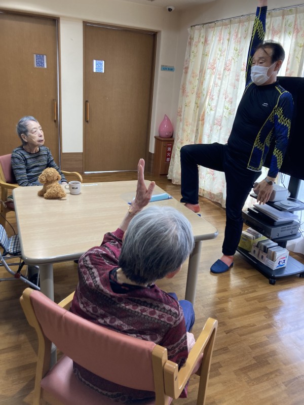 肘関節や肩回り、肩甲骨を柔軟に保つための運動や、姿勢を保ち背筋の運動、下腹部の筋力に刺激を与える運動、括約筋のトレーニングなど約40分間継続して行いました。