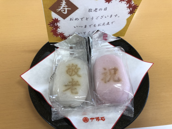 「祝」「敬老」と焼き印があり、皆さまとても喜んでいらっしゃいました。