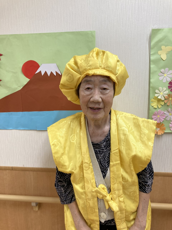 施設で米寿のお祝いに黄色のちゃんちゃんこをご用意しました。